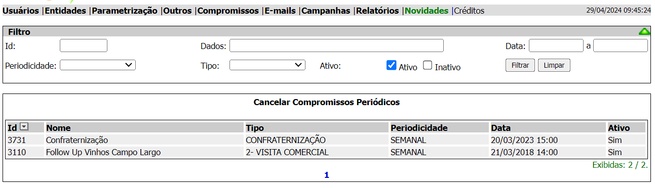 Início » Compromisso » Cancelar Compromissos Periódicos