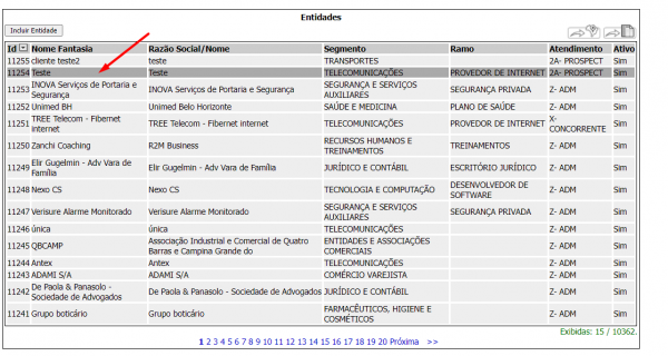 Após filtrar a entidade, clique na entidade desejada para acessá-la.