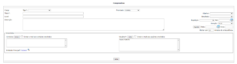 • Usuários: selecione os usuários que irão participar do compromisso