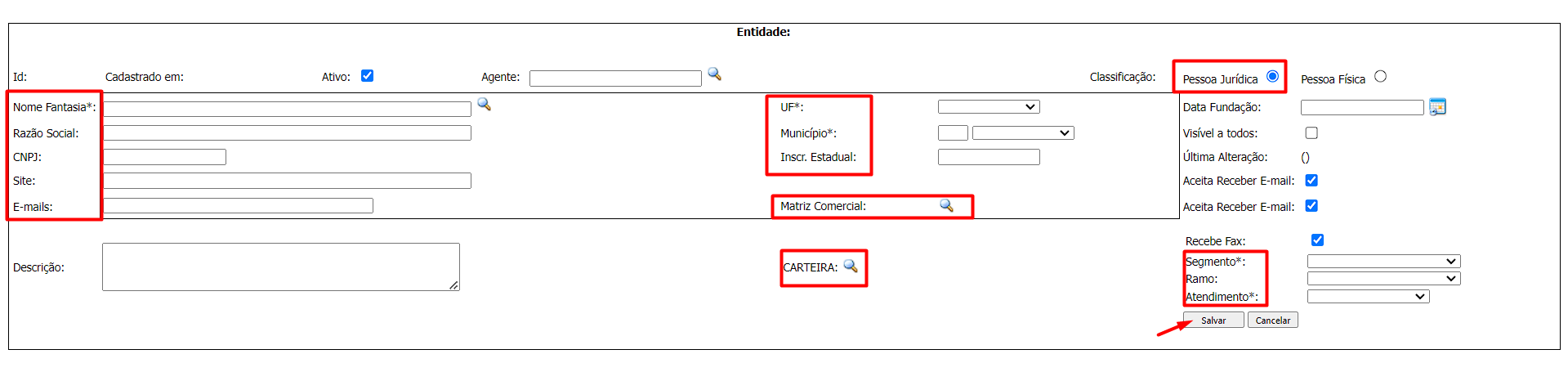 • PS: preencher sempre pessoa jurídica (salvo exceção de produtor rural) e nos contatos colocar a pessoa física referente a empresa/entidade