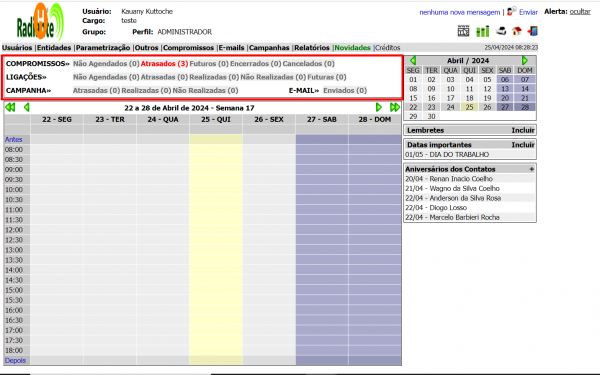Campanha: Atrasadas, Realizadas e Não Realizadas.