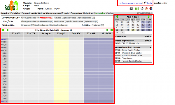Ligações: Não Agendadas, Atrasadas, Realizadas, Não Realizadas e Futuras.