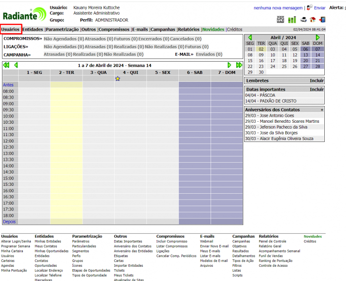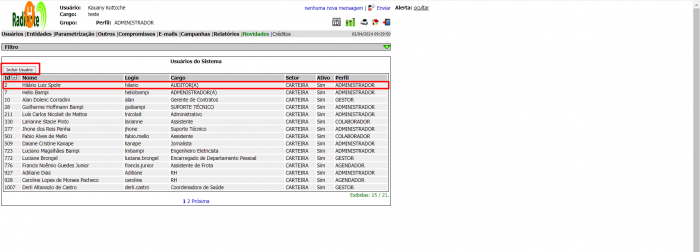 Nesta tela você consegue visualizar e acessar usuários do concliente. Nela você pode alterar as informações dos usuários.